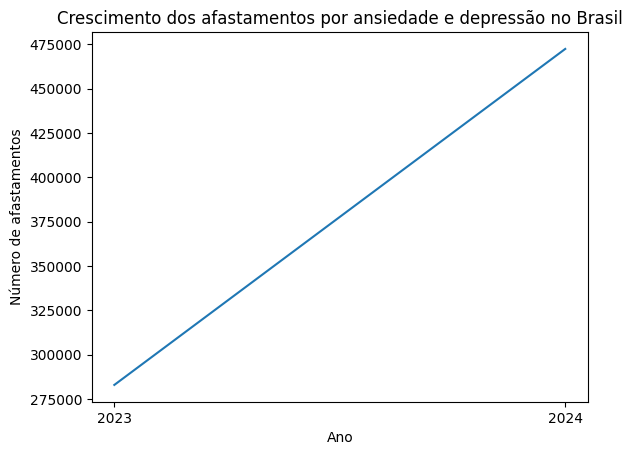 Gráfico – Crescimento dos afastamentos por ansiedade e depressão no Brasil